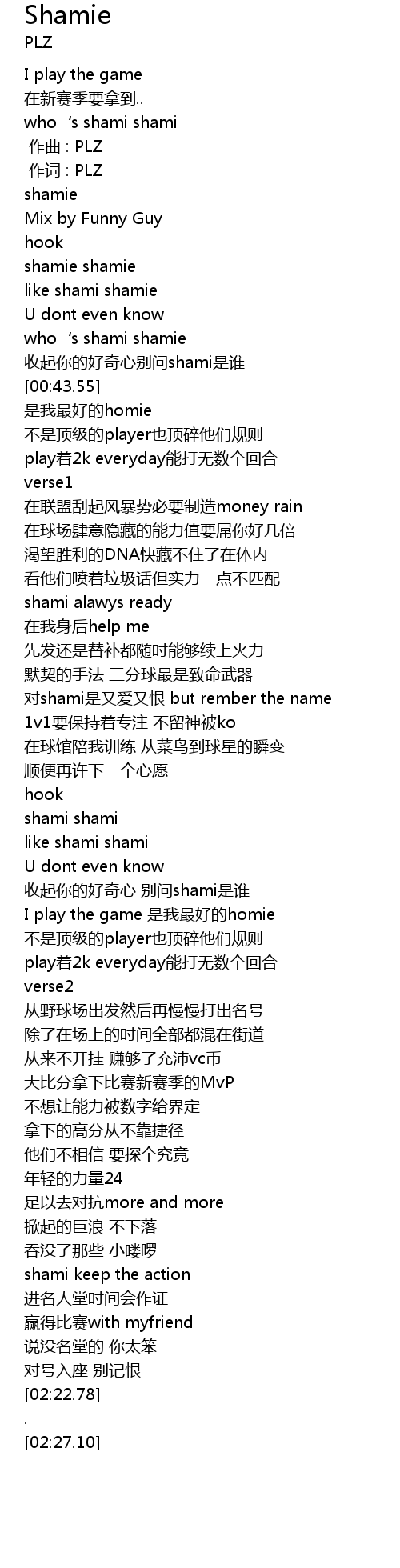 | [00:40.51] | 收起你的好奇心别问shami是谁 |