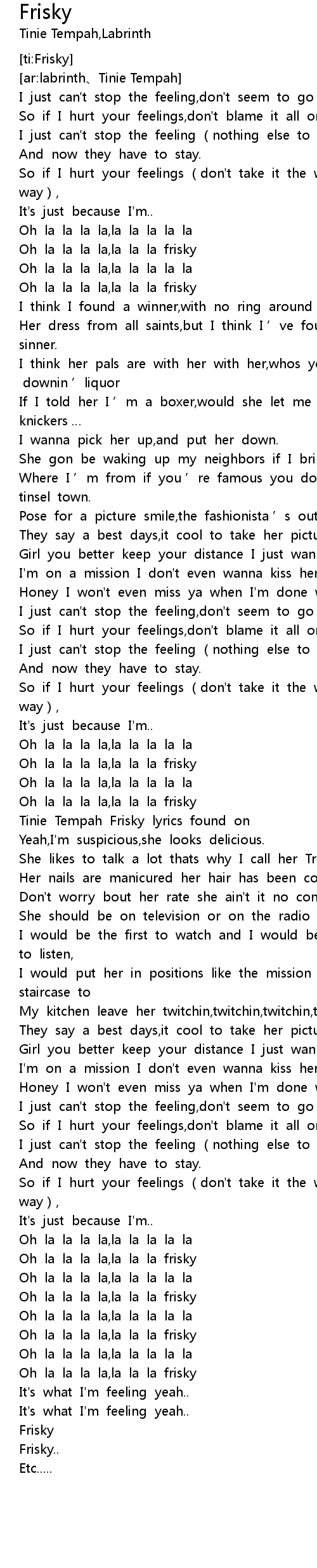 | [02:45.421] | Oh la la la la, la la la frisky |
