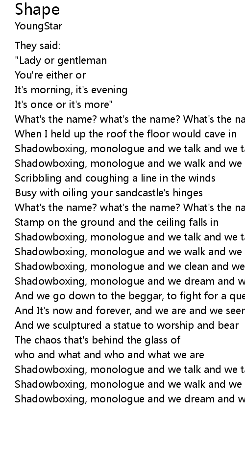 Shadowboxing, monologue and we talk and we talk and we talk |