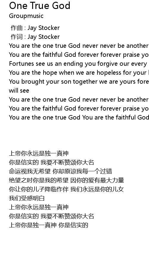| 歌曲 | One True God |