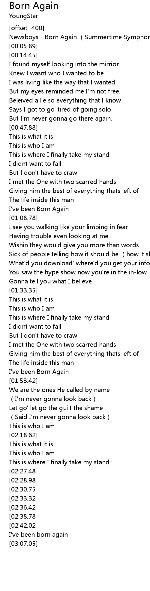 | [00:01.12] | Newsboys Born Again Summertime Symphony Mix |