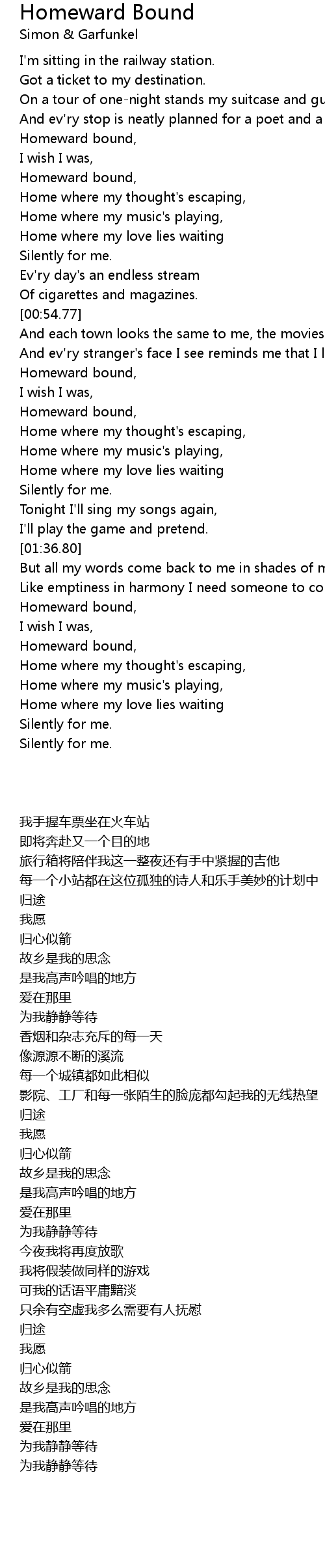[01:03.74] And ev'ry stranger's face I see reminds me that I long to be,