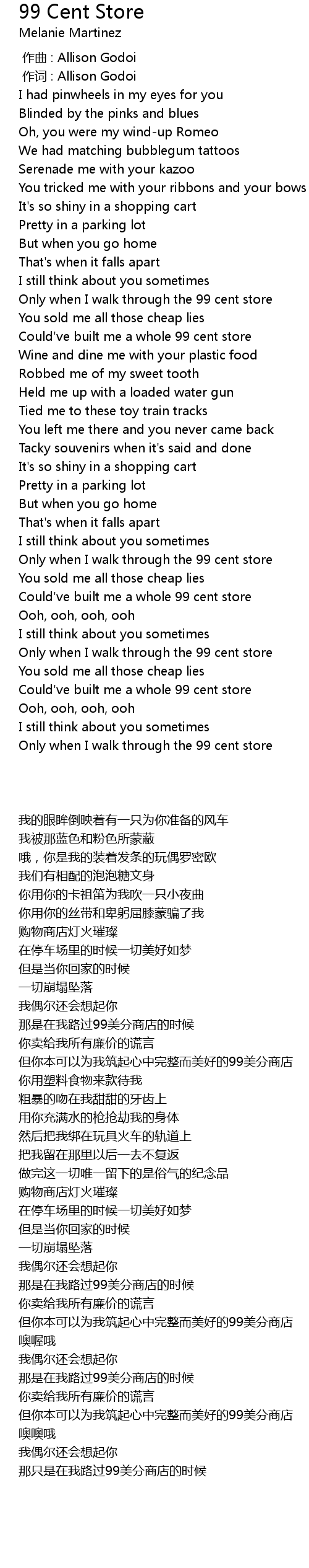 | 歌曲 | 99 Cent Store |