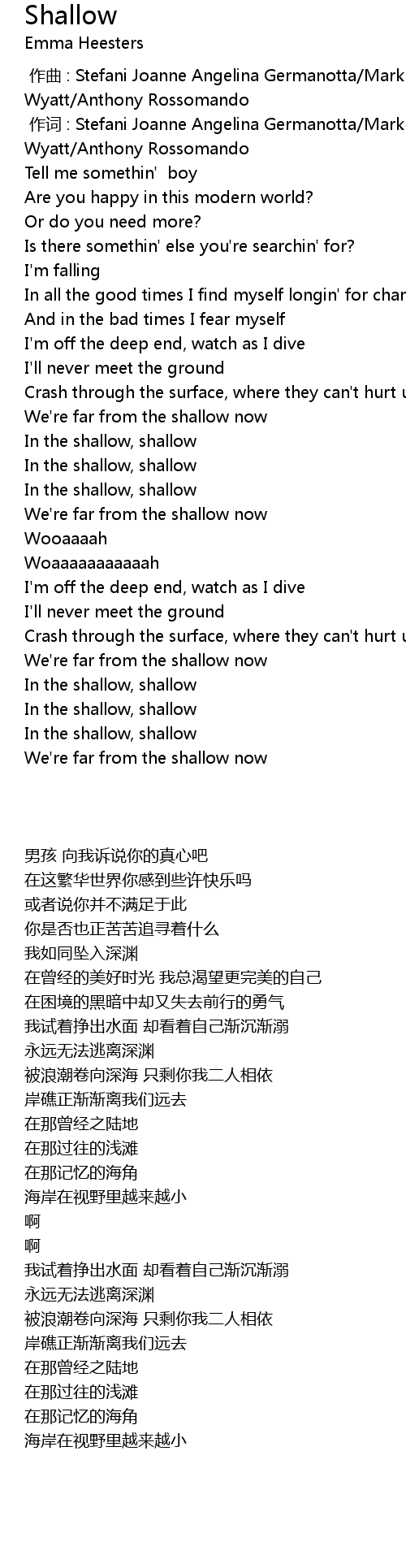 | 歌曲 | Shallow |