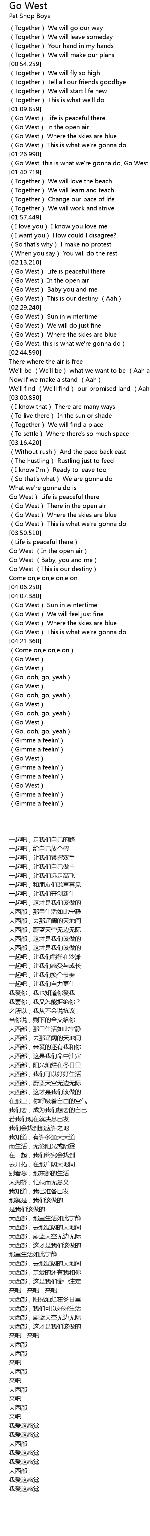 | [04:10.300] | Go West We will feel just fine |