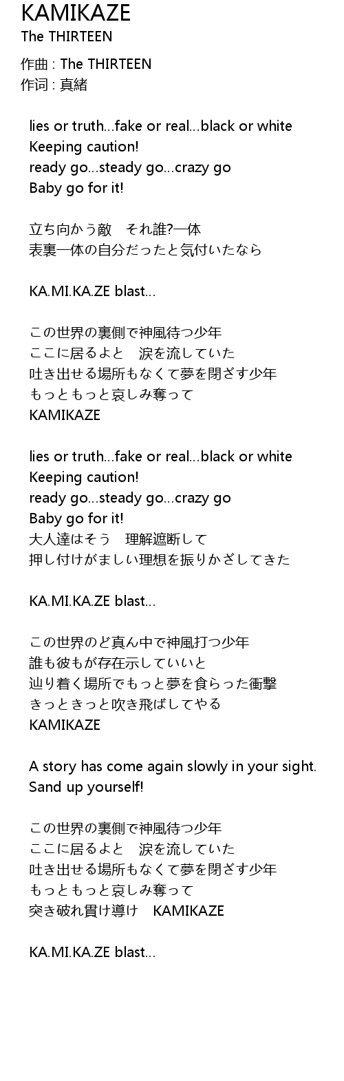 | 突き破れ貫け導け KAMIKAZE | |