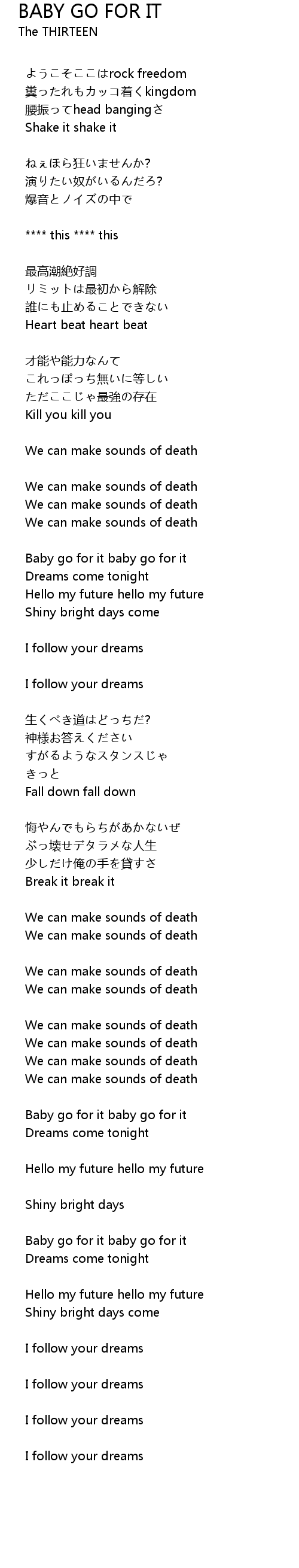 | 歌曲 | BABY GO FOR IT |