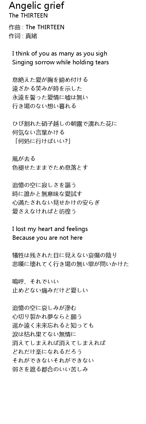 | 悲嘆に壊れてく行き場の無い罪が問いかけた | |
