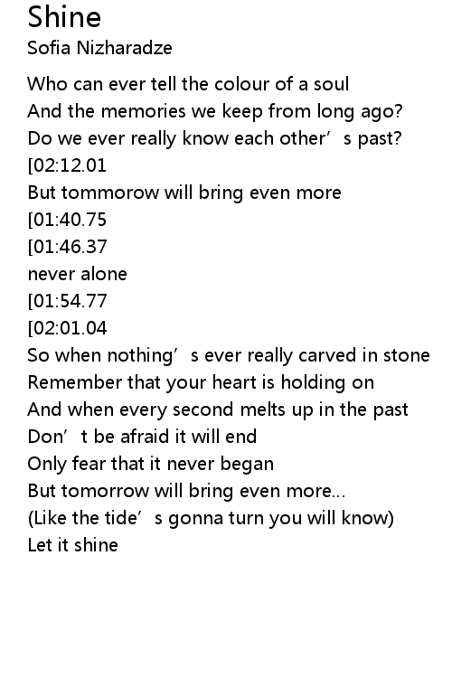 | [01:00.92][02:01.04] | Wipe your dust of your love, let it shine |