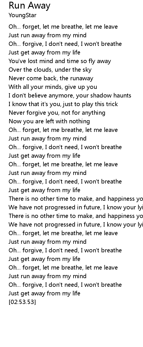 | [02:35.98] | Oh... forget, let me breathe, let me leave |