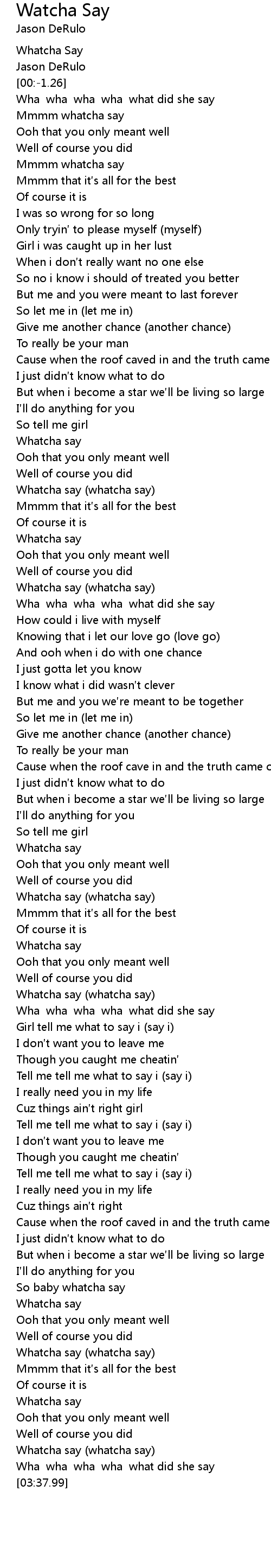 | [03:18.29] | Whatcha say (whatcha say) |