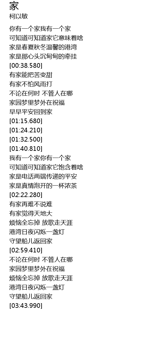 | [00:21.700] | 家是春夏秋冬温馨的港湾 |