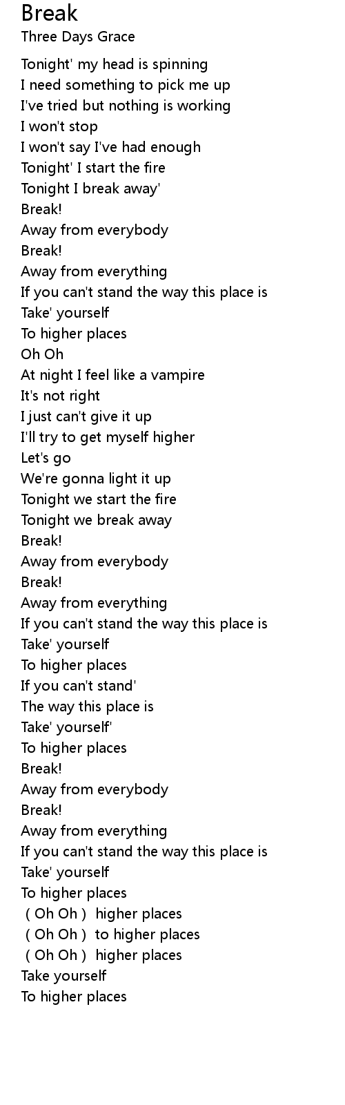 | [00:40.58] | Tonight I break away' |