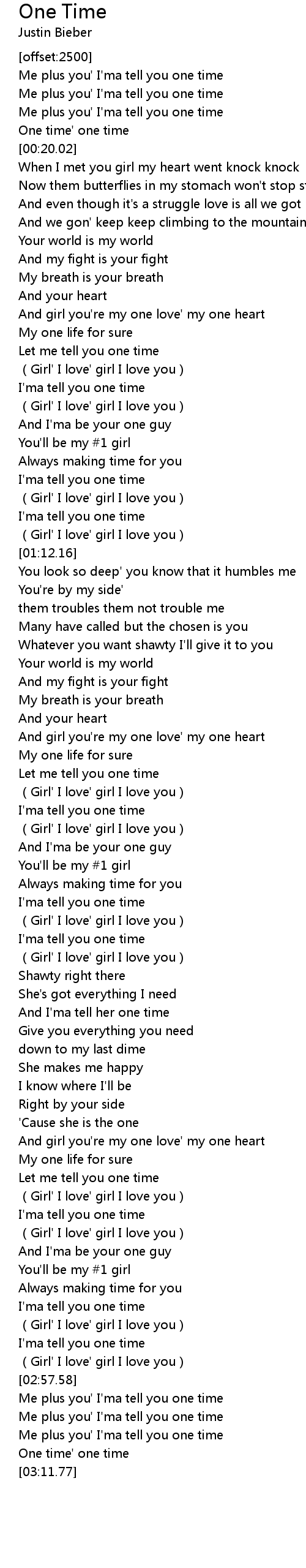 | [00:07.24] | Me plus you' I'ma tell you one time |