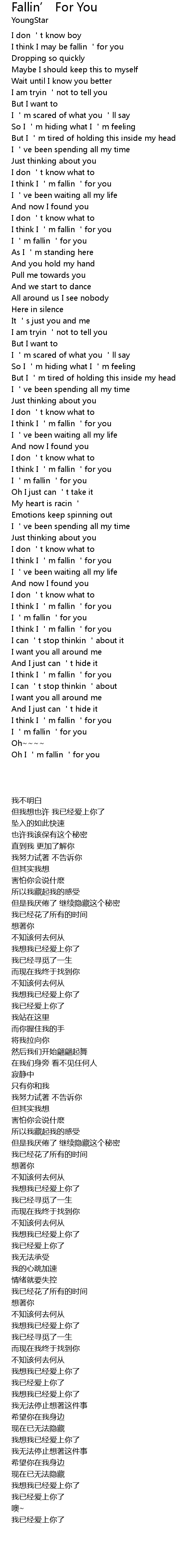 | 歌曲 | Fallin’ For You |