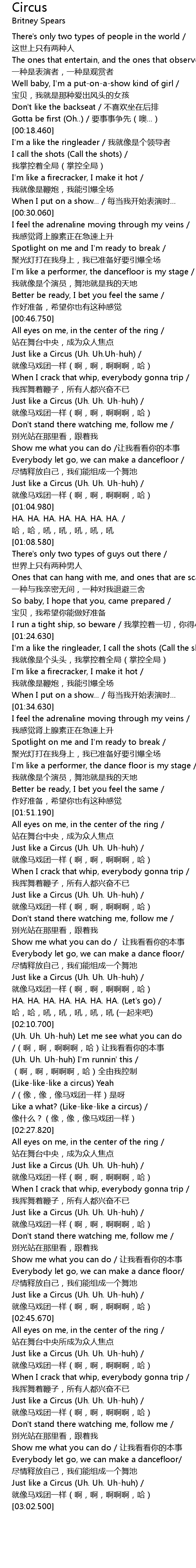 | [02:48.230] | Just like a Circus (Uh. Uh. Uh-huh) / 就像马戏团一样(啊,啊,啊啊啊,哈) |