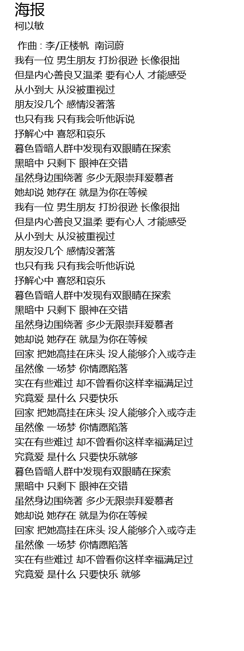 | [03:37.00] | 究竟爱 是什么 只要快乐就够 |