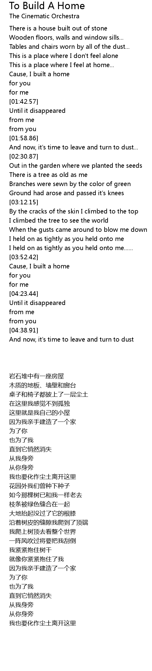 歌曲 To Build A Home