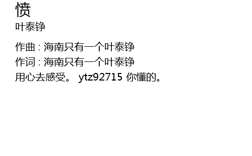 | 作词 : 海南只有一个叶泰铮 | |