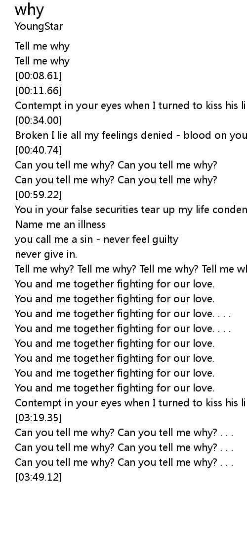 [01:23.68] Tell me why? Tell me why? Tell me why? Tell me why? Yeah!