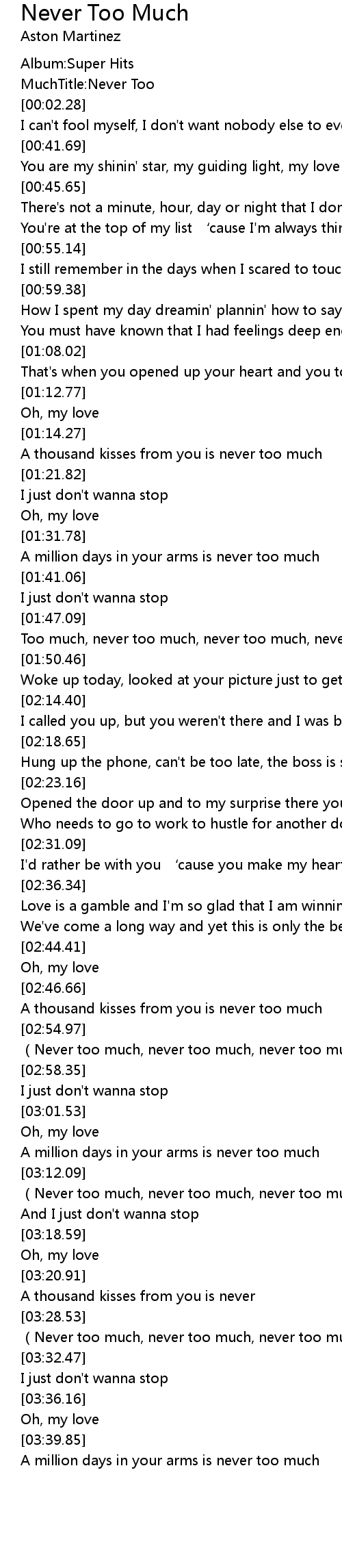 | [01:47.78] | Too much, never too much, never too much, never too much |
