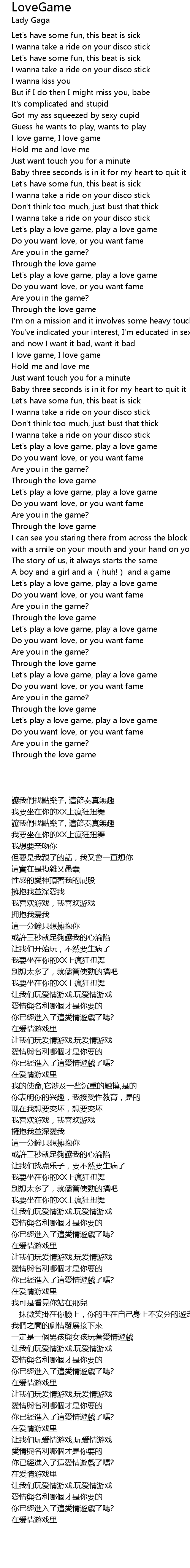 | 歌曲 | LoveGame |