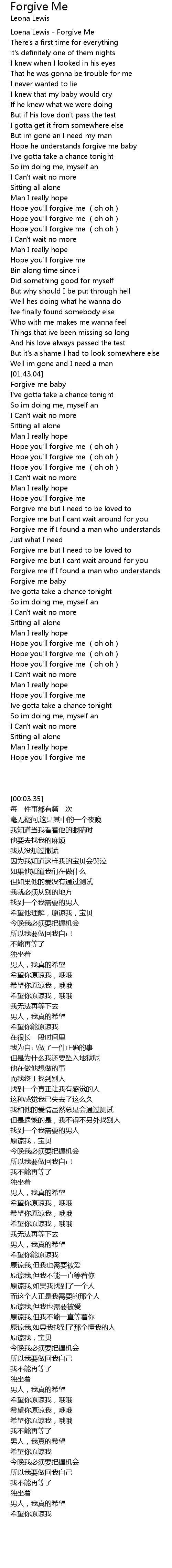 | [00:03.35] | Loena Lewis Forgive Me |