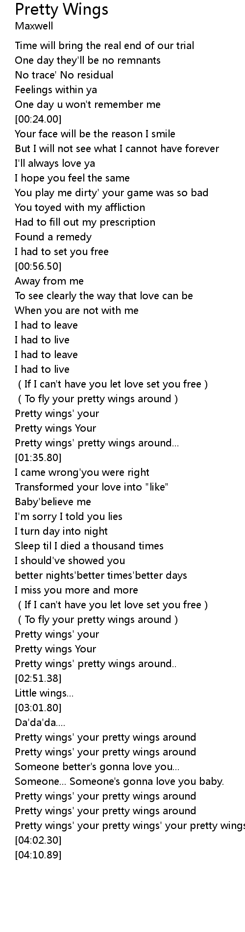 | [02:24.17] | Pretty wings Your |