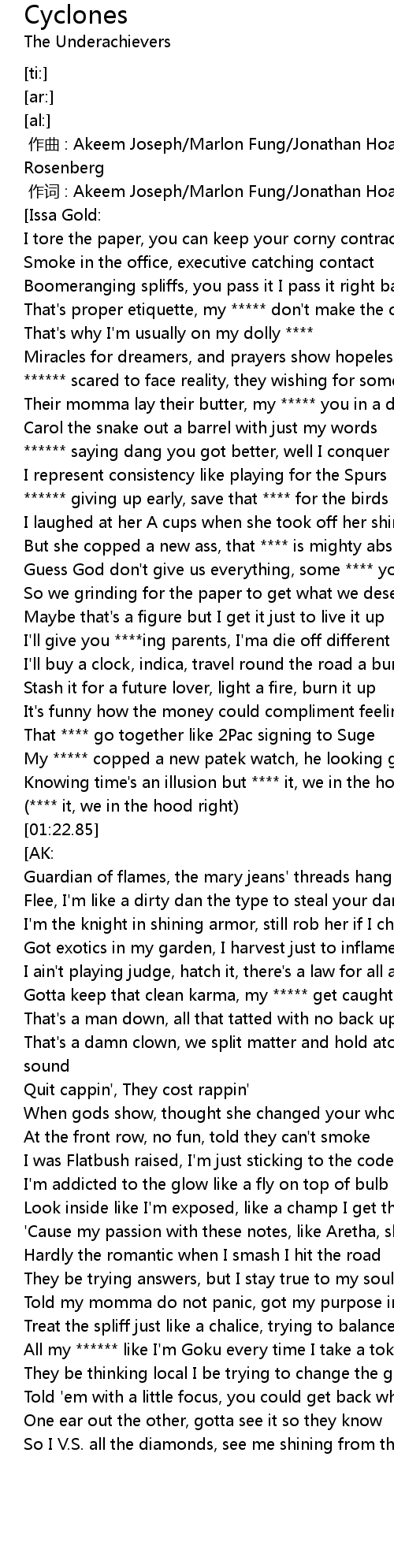 | [02:24.65] | All my ****** like I'm Goku every time I take a toke |
