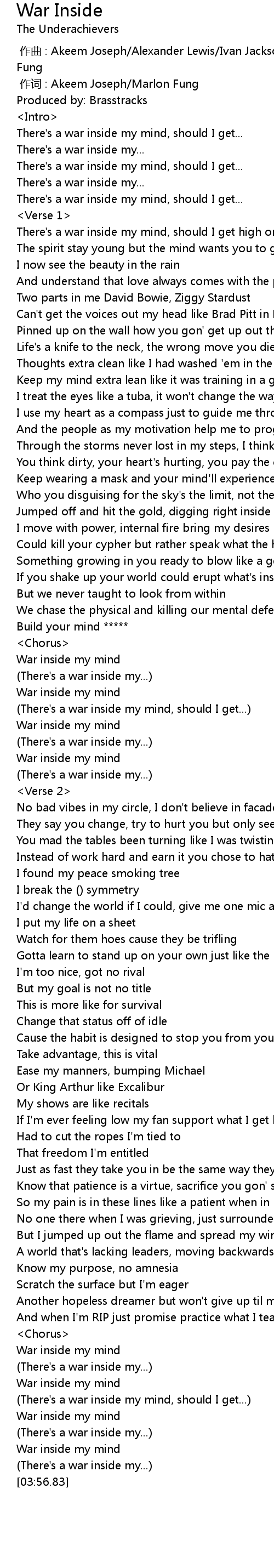 | [03:38.49] | War inside my mind |