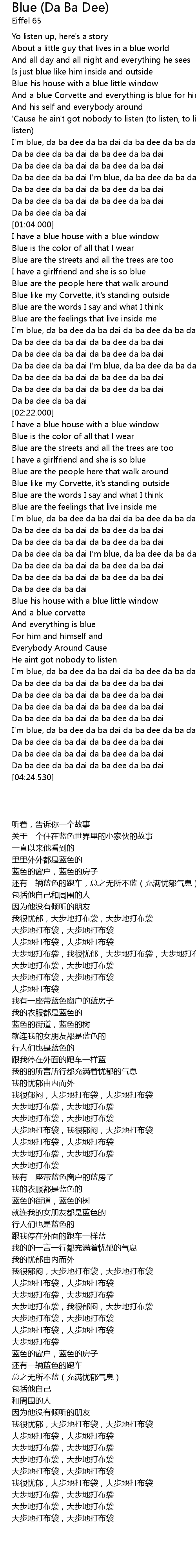 Da ba dee da ba dai I'm blue, da ba dee da ba dai da ba dee da ba dai |