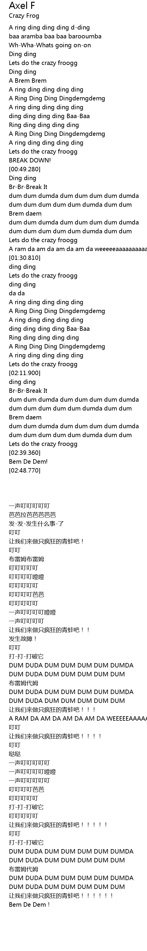 | [02:38.0] | 让我们来做只疯狂的青蛙吧!!!!!! |