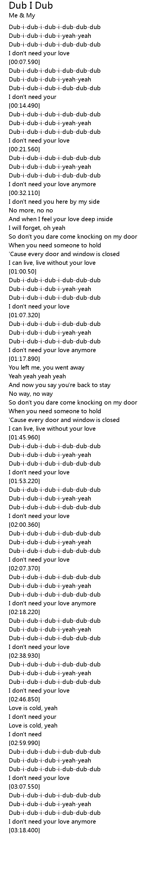 | [03:00.800] | Dub-i-dub-i-dub-i-dub-dub-dub |