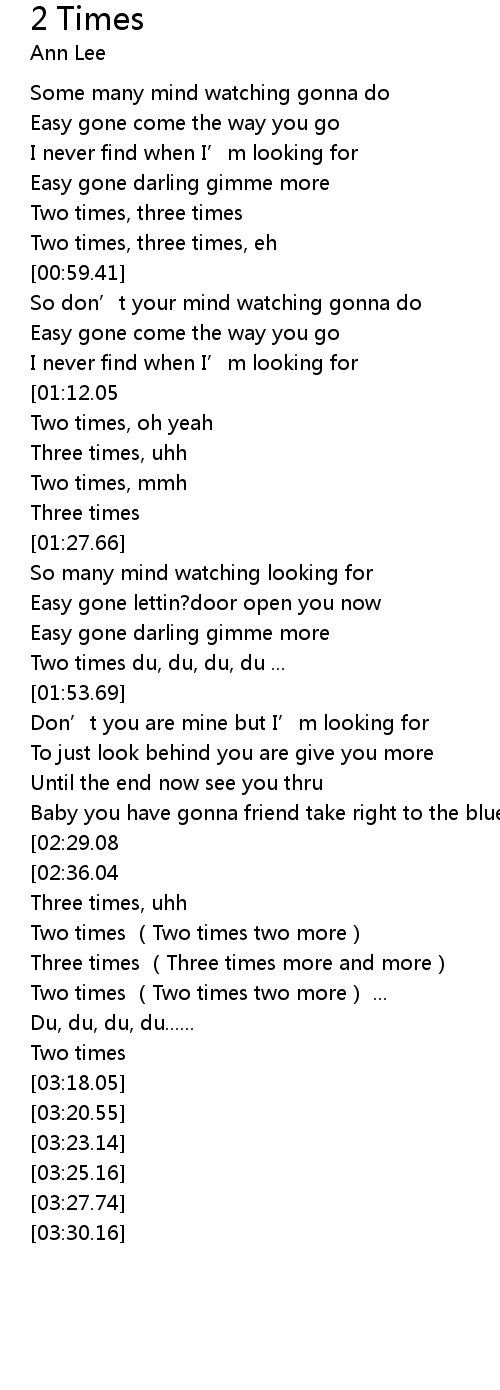 | [02:51.51] | Two times (Two times two more) ... |