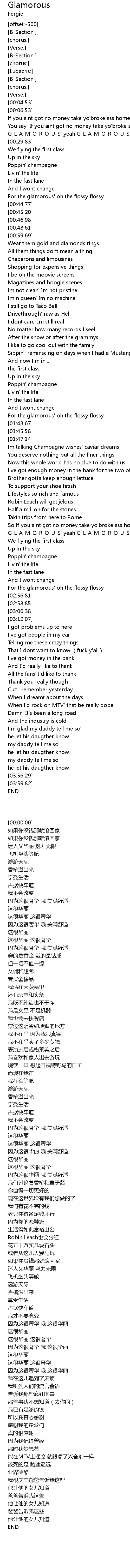 | [00:55.84][00:48.61] | For the glamorous' oh the flossy flossy |