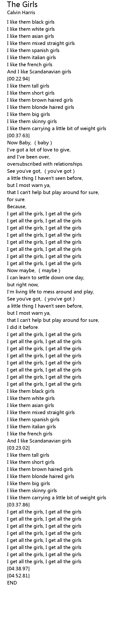 | [00:34.41] | I like them carrying a little bit of weight girls |