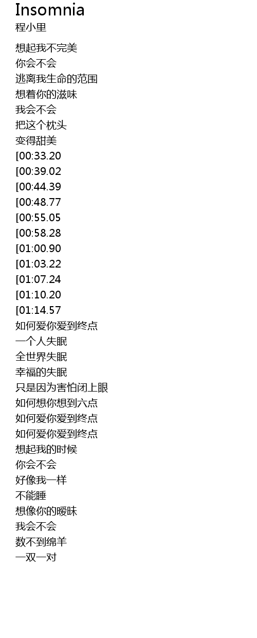 | [02:40.94][00:55.05] | 一个人失眠 |
