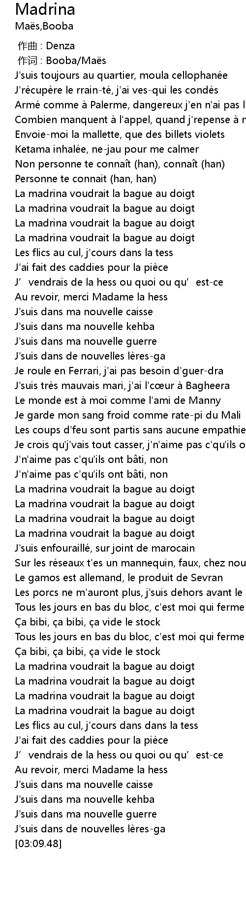 | [00:01.000] | 作词 : Booba/Maës |
