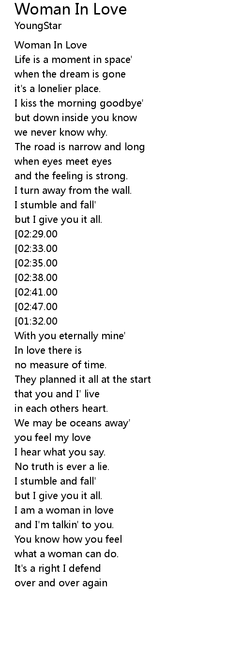 [03:27.00][02:29.00][01:09.00] I am a woman in love