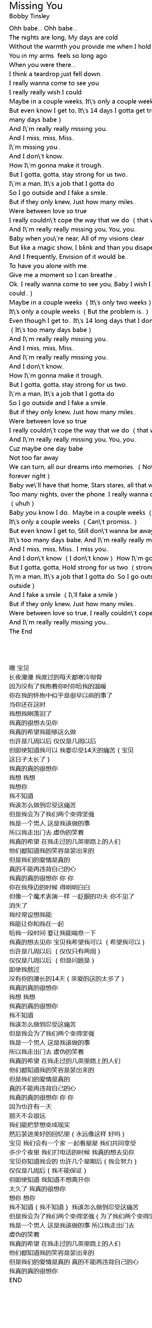 | [01:37.00] | And I\'m really really missing you, You, you.. |