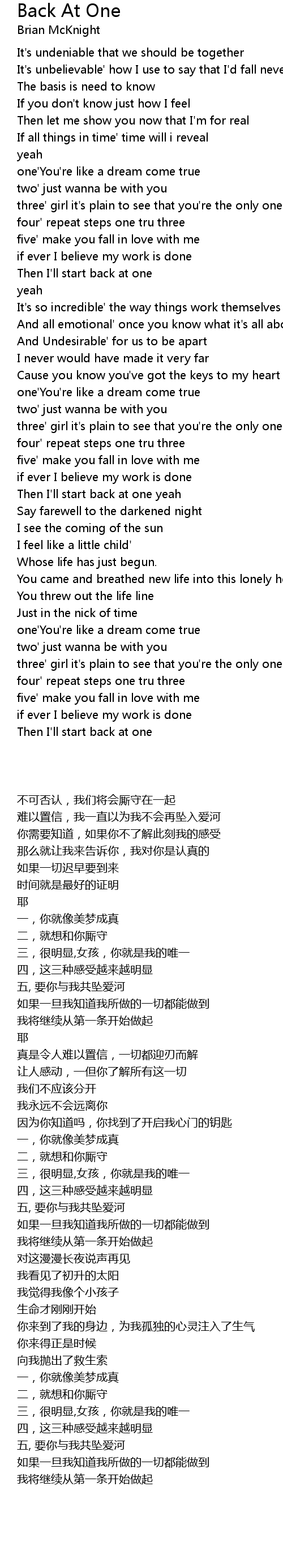 Back At One 歌词