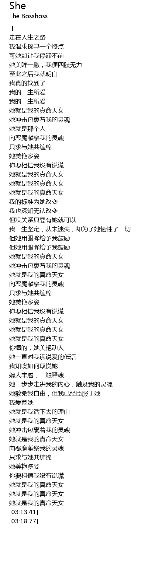 | [03:02.69] | tā jiù shì wǒ dí zhēn mìng tiān nǚ |