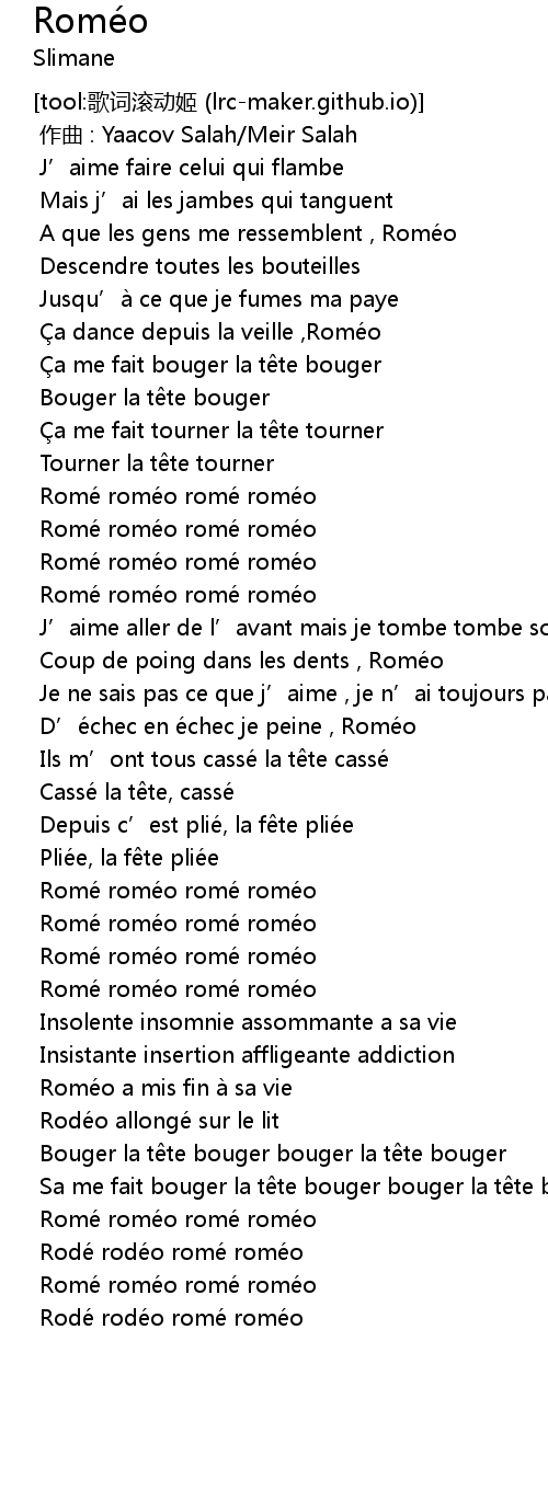 | [00:13.461] | A que les gens me ressemblent , Roméo |