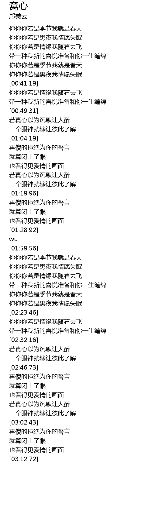 | [02:00.51] | 你你你若是季节我就是春天 |