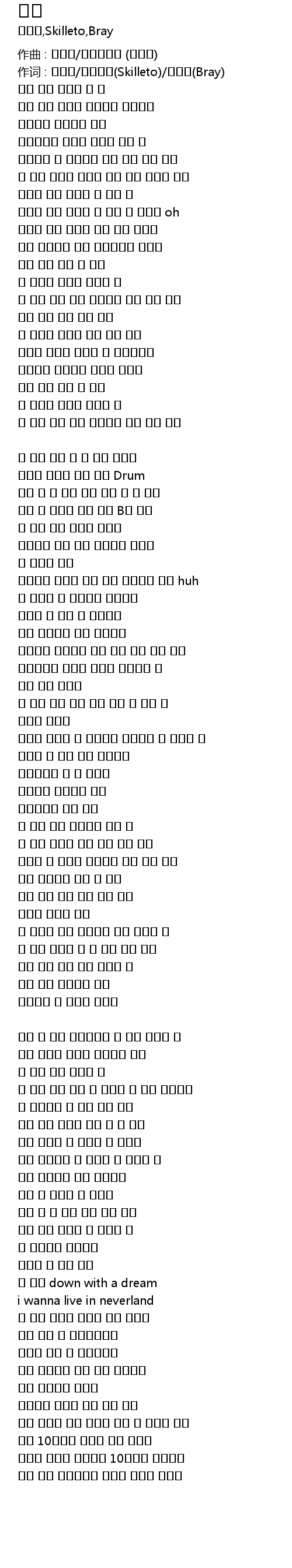 作词 : 최고기/스킬레토(Skilleto)/브레이(Bray)