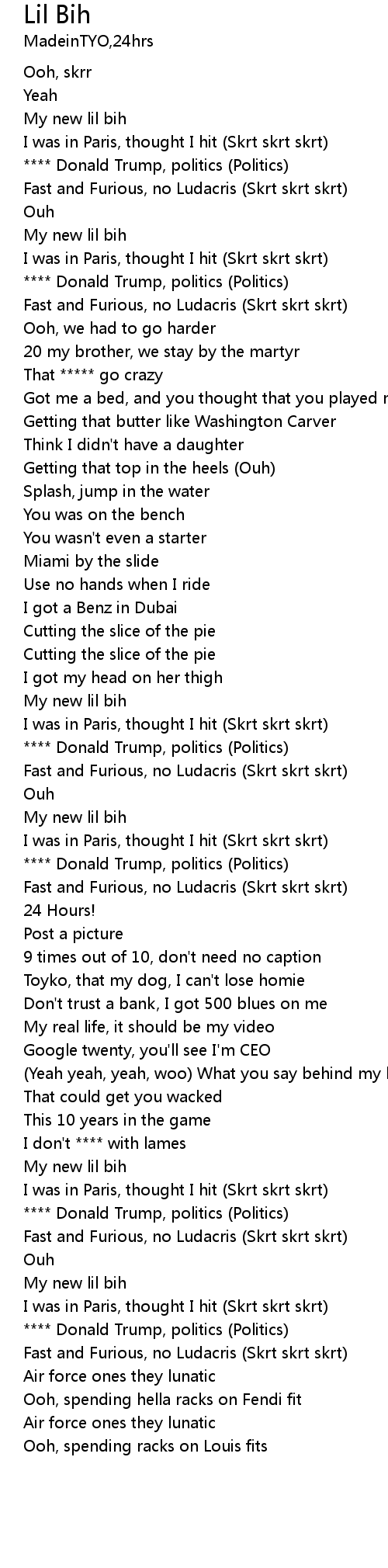 | [00:26.89] | My new lil bih |
