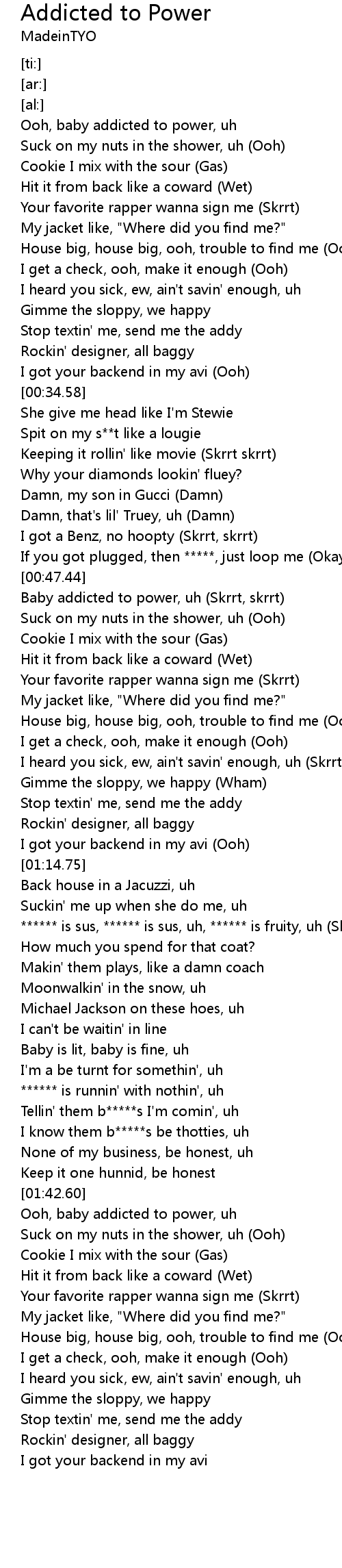 Ooh, baby addicted to power, uh |