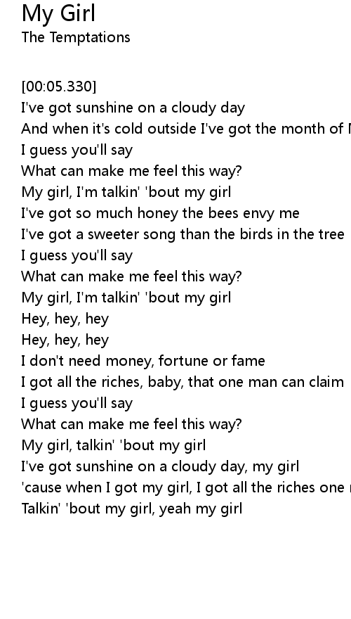 | [02:17.360] | My girl, talkin' ' bout my girl |