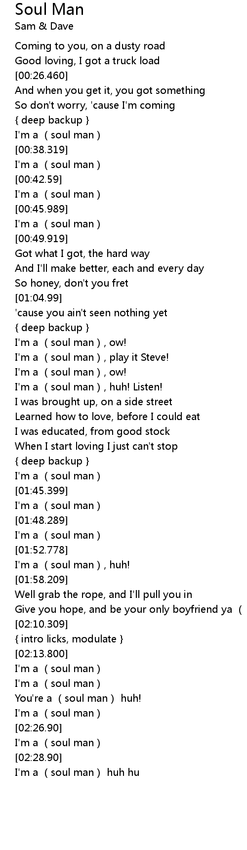 | [00:43.559] | I' m a soul man |