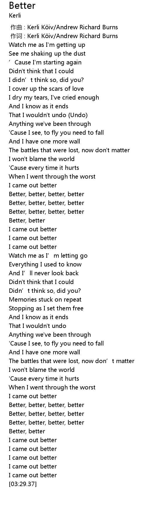| [01:14.70] | Better, better, better, better |